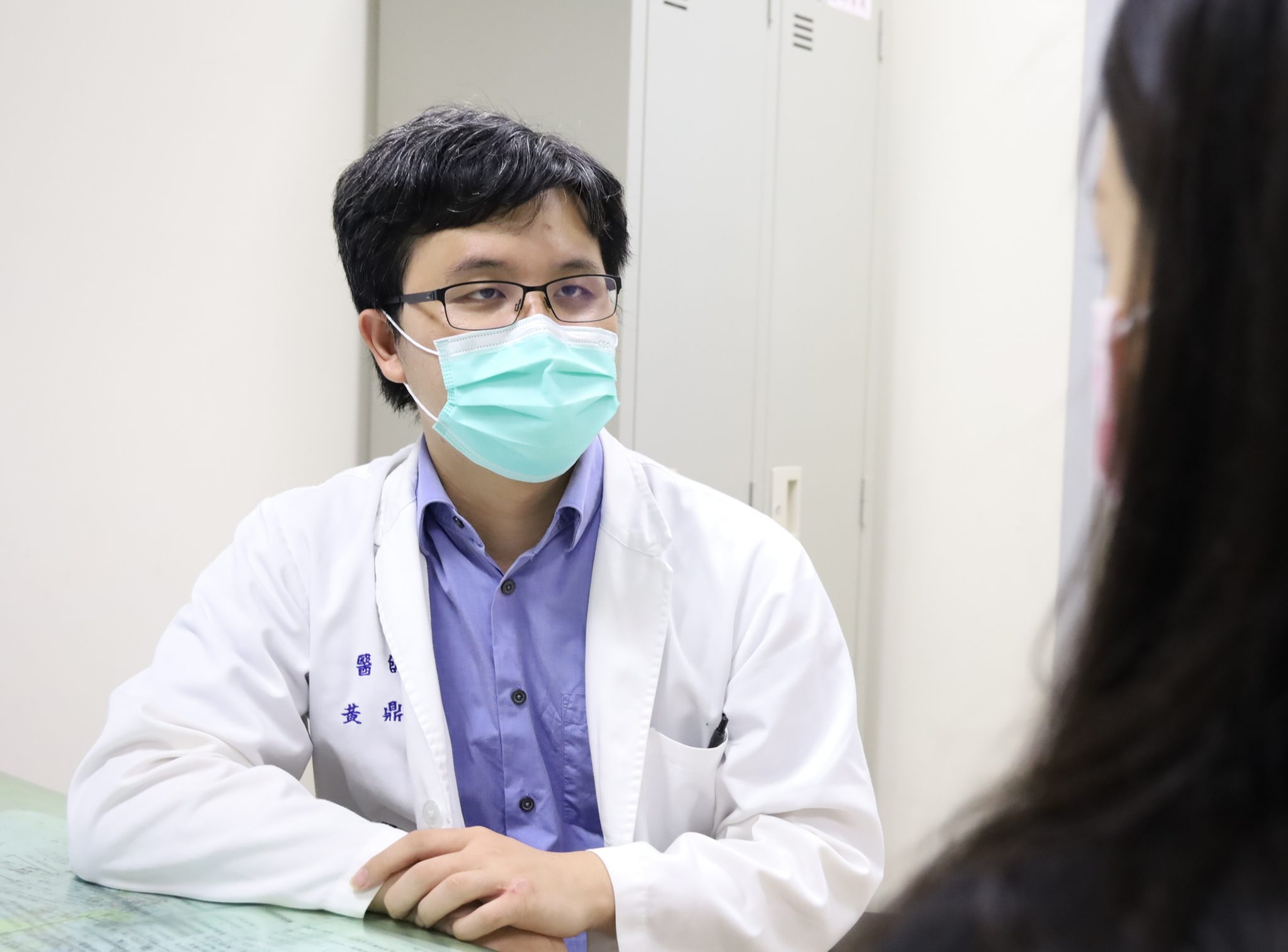 ▲新竹馬偕紀念醫院小兒血液腫瘤科主任黃鼎煥醫師於診間向家長解說血友病孩童的預防性。(圖/新竹馬偕紀念醫院提供)