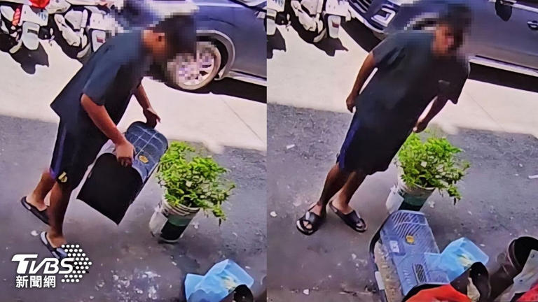 男子丟下籠子後逕自離去,