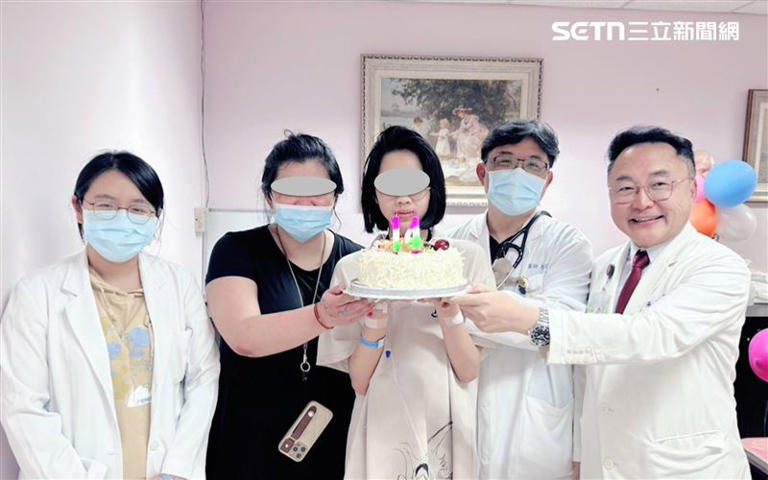邀請醫護人員與家屬一同為她慶祝重獲新生。
