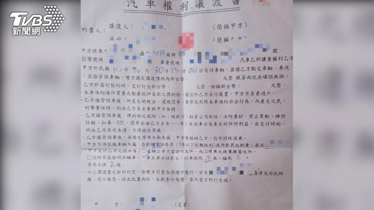 隨後簽下讓渡書將車轉賣換取現金投資。